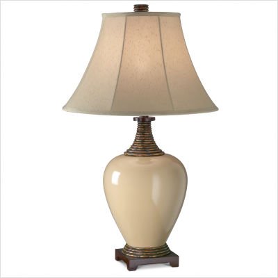 A lamp with a warm and organic look, this design features a beautiful ceramic base in an ivory glaze. Up top is an ivory fabric shade. A 3-way socket makes it easy to select different lighting levels. From the Lite Source lighting collection. Takes one 150 watt 3-way bulb (not included). 27" high. Shade is 14" across the top, 16" across the bottom, 10" high.